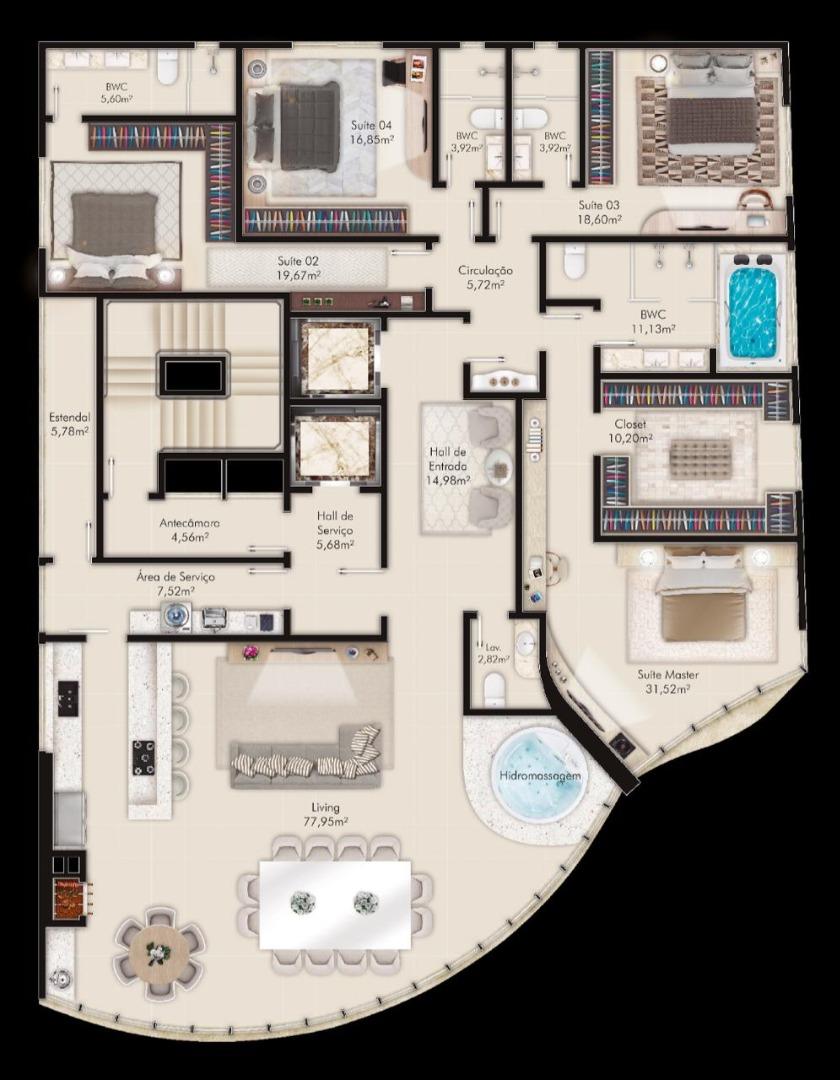 Apartamento 4 suítes em Perequê, Porto belo - SC.Singapore Concept, apartamentos com vista para o mar, são 4 suítes e amplo espaço interno, 04 vagas de garagem, e área de lazer luxuosa.
