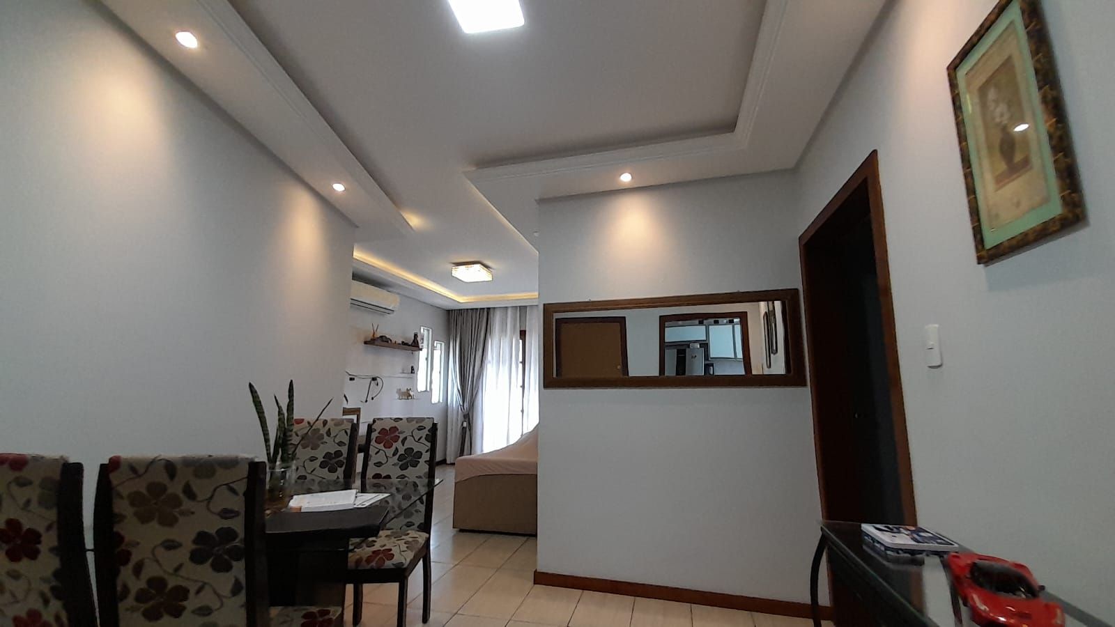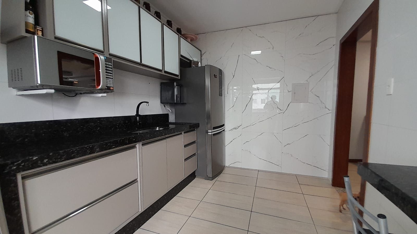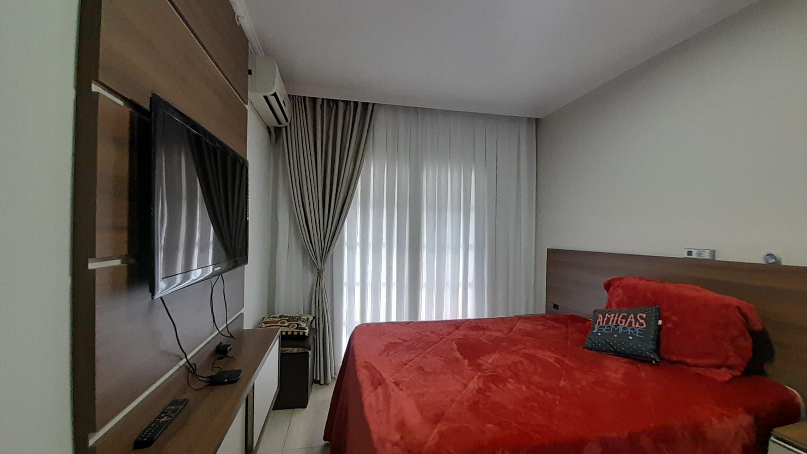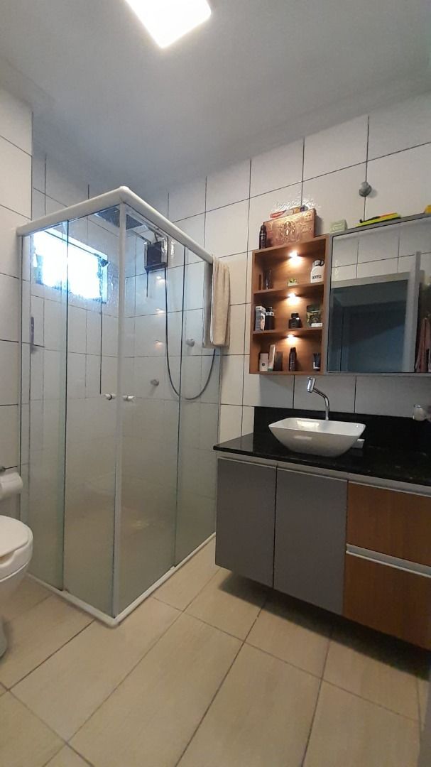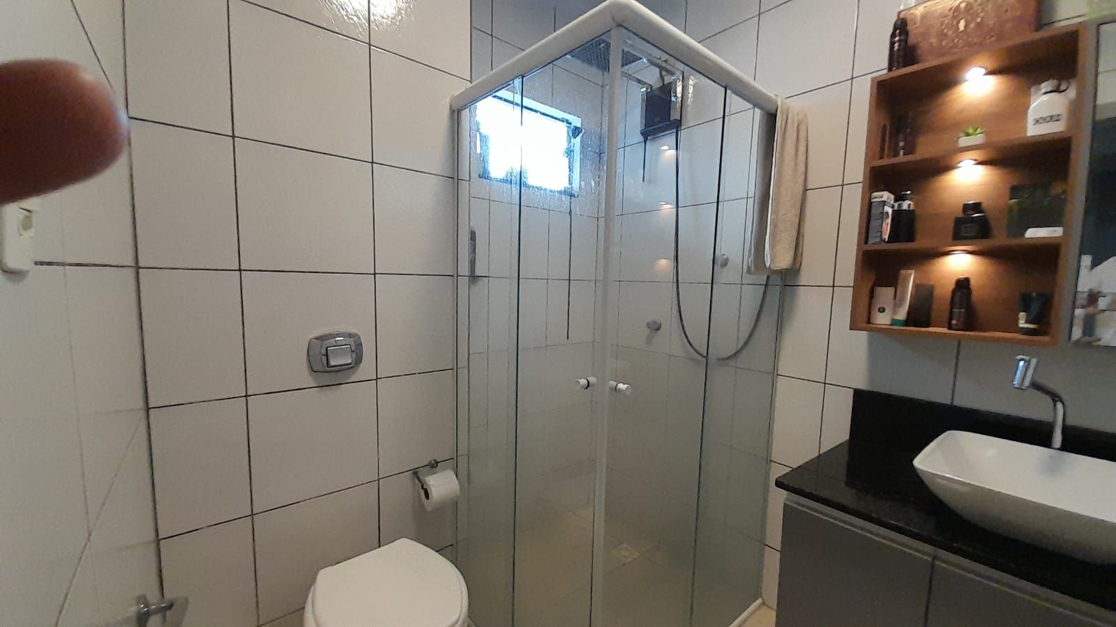 Possui acabamento em piso cerâmico em todos os ambientes, cozinha, banheiros, fachada do imóvel, aberturas em madeira, portas verniz, teto em gesso, ar condicionado Split em todos ambientes, com portão basculante.